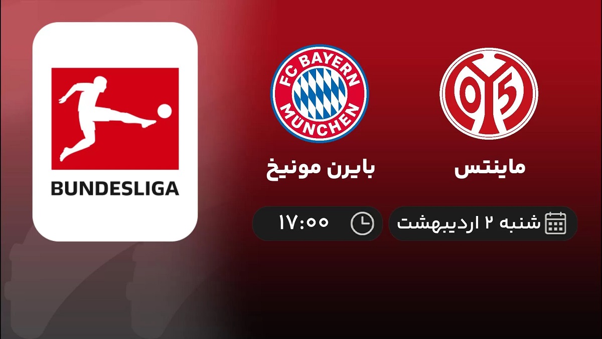 پخش زنده بایرن مونیخ ماینتس 2 اردیبهشت 1402