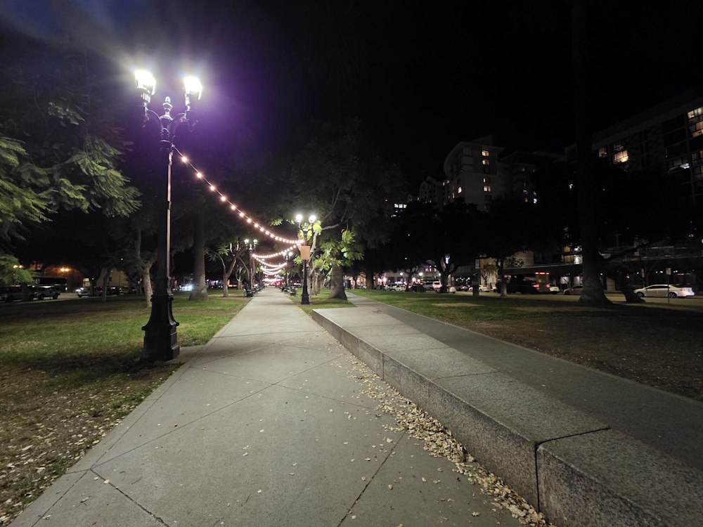 در شب، این تفاوتها کمتر میشود، اما گلکسی S24 اولترا هنوز هم نویز بیشتری را در تصاویر حفظ میکند و در عوض کمی جزئیات بیشتری به نمایش میگذارد.