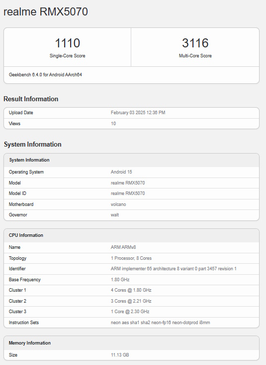 از آنجایی که شماره مدل این گوشی با ریلمی P3 یکسان است، احتمال دارد که این دو دستگاه مدلهای ریبرند شده از یکدیگر باشند. اما از سوی دیگر، نسخه Realme P3 با تراشه اسنپدراگون 7s نسل 3 در گیکبنچ دیده شده بود، بنابراین این احتمال هم وجود دارد که با دو گوشی متفاوت روبهرو باشیم.