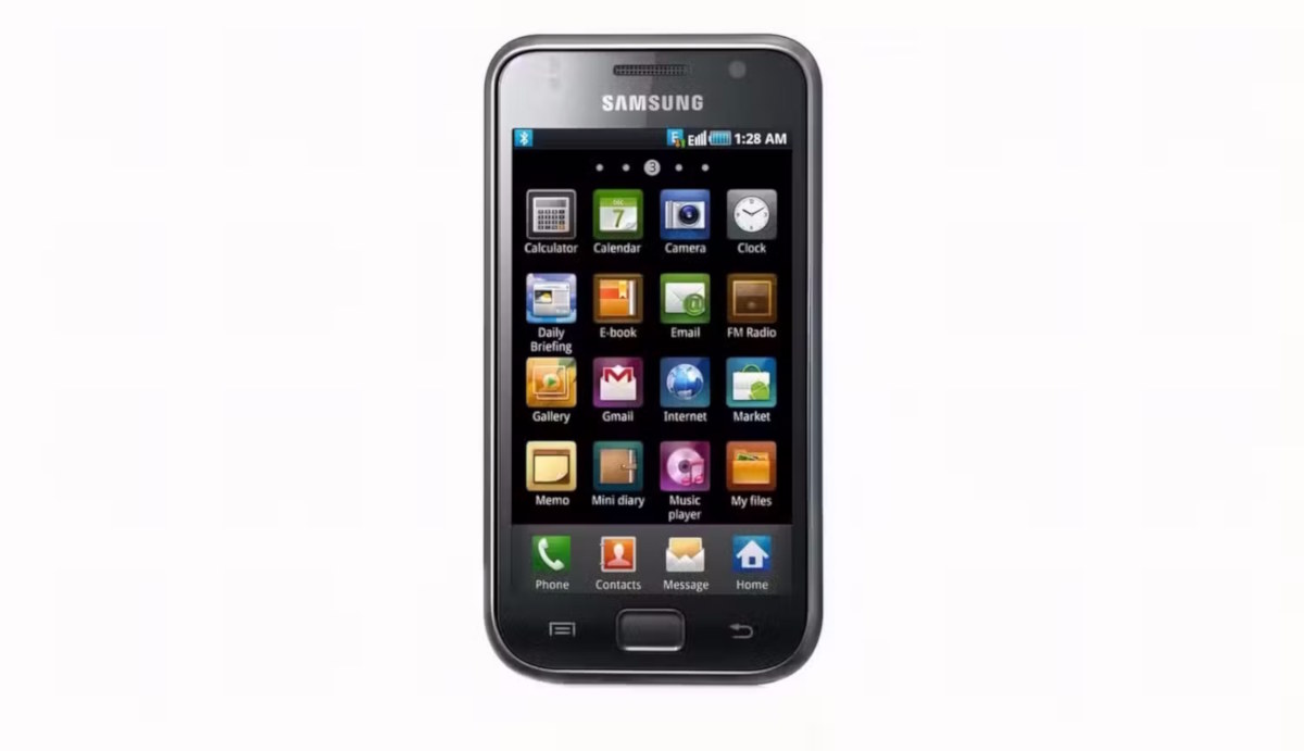 مدل اولیه Samsung Galaxy S که در سال ۲۰۱۰ عرضه شد، نقطه آغاز سری پرطرفدار گلکسی بود. این گوشی دارای نمایشگر ۴ اینچی Super AMOLED بود، در حالی که آیفونهای آن زمان هنوز از نمایشگرهای LCD استفاده میکردند. همچنین ۵۱۲ مگابایت رم و باتری ۱۵۰۰ میلیآمپری قابل تعویض داشت.