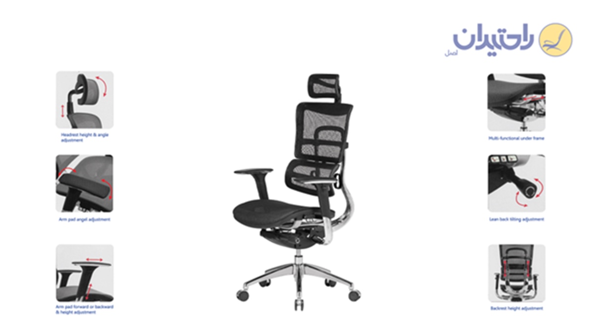 یک صندلی حرفهای باید امکان تغییر در ارتفاع، عمق نشیمن، زاویه پشتی و تنظیم دستهها را فراهم کند. اگر صندلی فقط یکی از این پارامترها را دارد، ممکن است برای نشستن طولانیمدت مناسب نباشد.